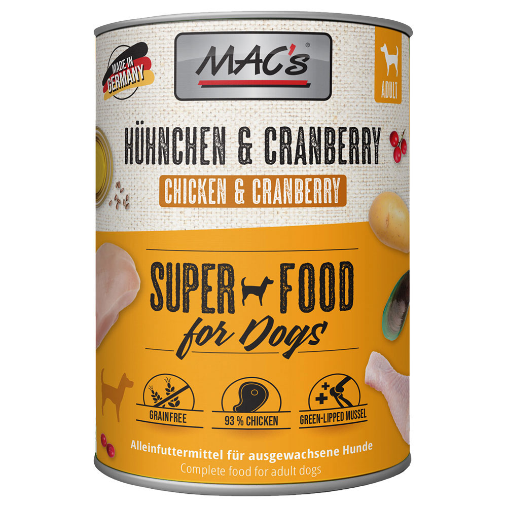 Découvrir et commander MAC’s Adult 6 x 800 g pour chien – poulet, airelles dans la boutique en ligne